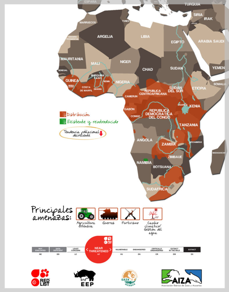 Esta especie llegó a Cabárceno como grupo reproductor en agosto de 2022, como parte del programa EEP para la conservación de las especies amenazadas.
