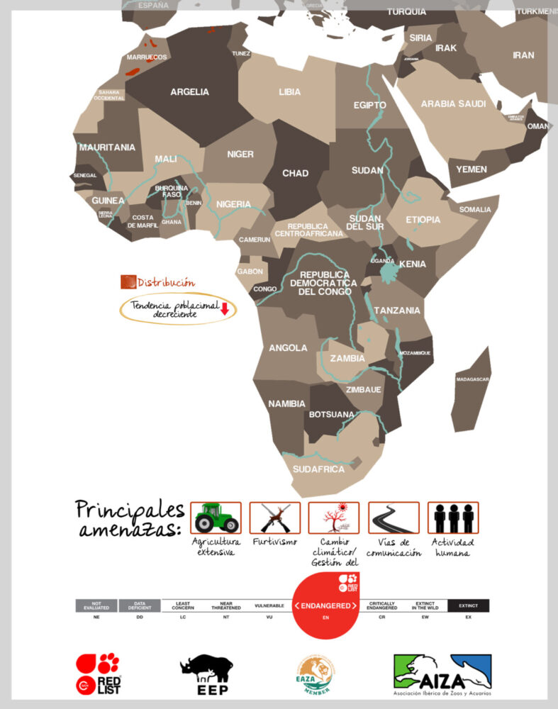 Las poblaciones más importantes se sitúan en las montañas de Marruecos, y en menor número en Argelia.